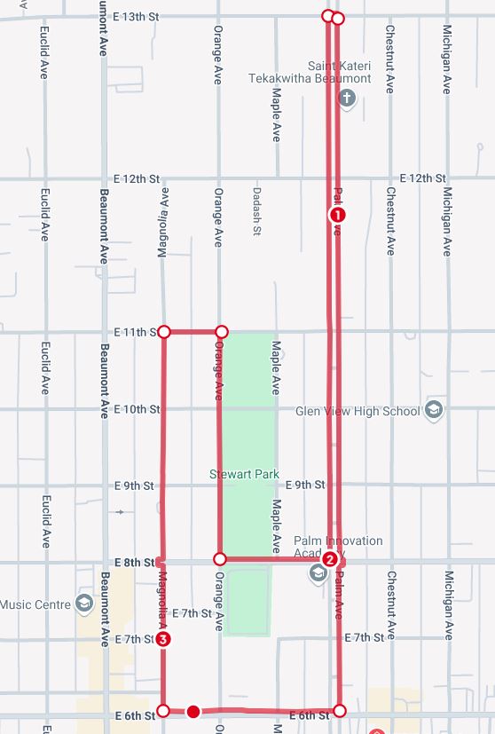 - 6th Street from Beaumont Avenue to Palm Avenue